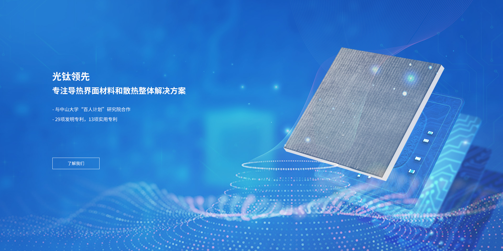廣東光鈦領先新材料有限公司是廣東光大企業集團旗下拓展科技板塊業務的子公司之一,致力于導熱材料及整體解決方案的研發、生產和銷售。
