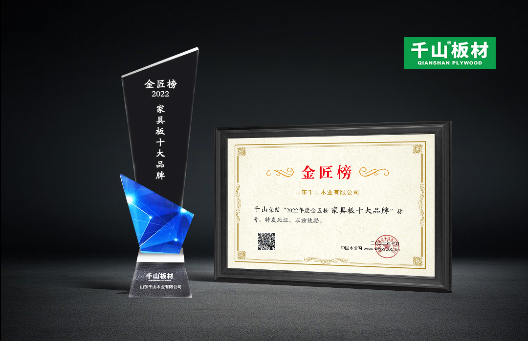 強勢入局 千山板材出征金匠榜榮獲“家具板十大品牌”榮譽!