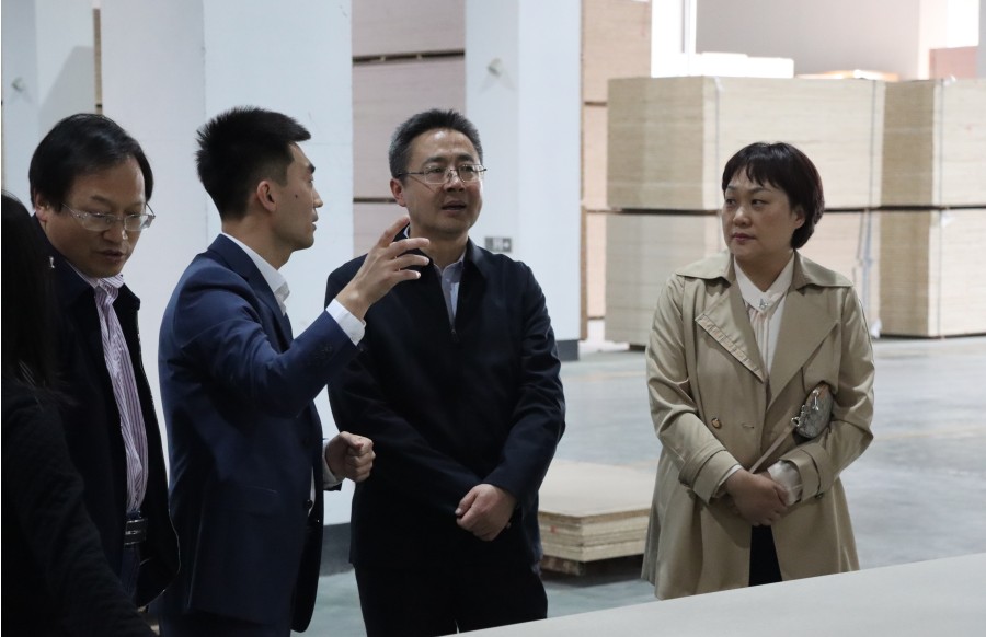 4月9日下午,全國人造板標準化技術委員會副主任兼秘書長研究員段新芳,副秘書長李曉玲,臨沂市檢驗檢測中心黨組書記、主任劉愛友,黨組成員、副主任黃波,市檢驗檢測中心質檢所所長竇興霞及相關專業技術人員蒞臨千山木業進行調研。