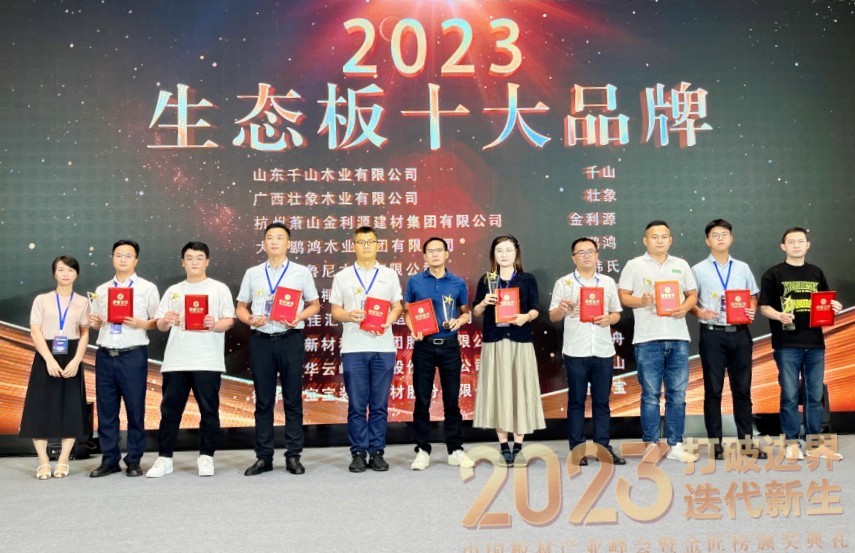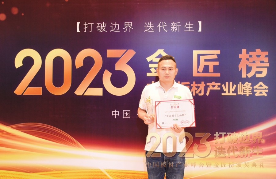 在此次評選中,千山板材實力登榜,憑借優(yōu)異的產(chǎn)品品質(zhì)、強大的品牌實力、良好的服務口碑,再次斬獲金匠榜2023年度“生態(tài)板十大品牌”榮譽稱號。