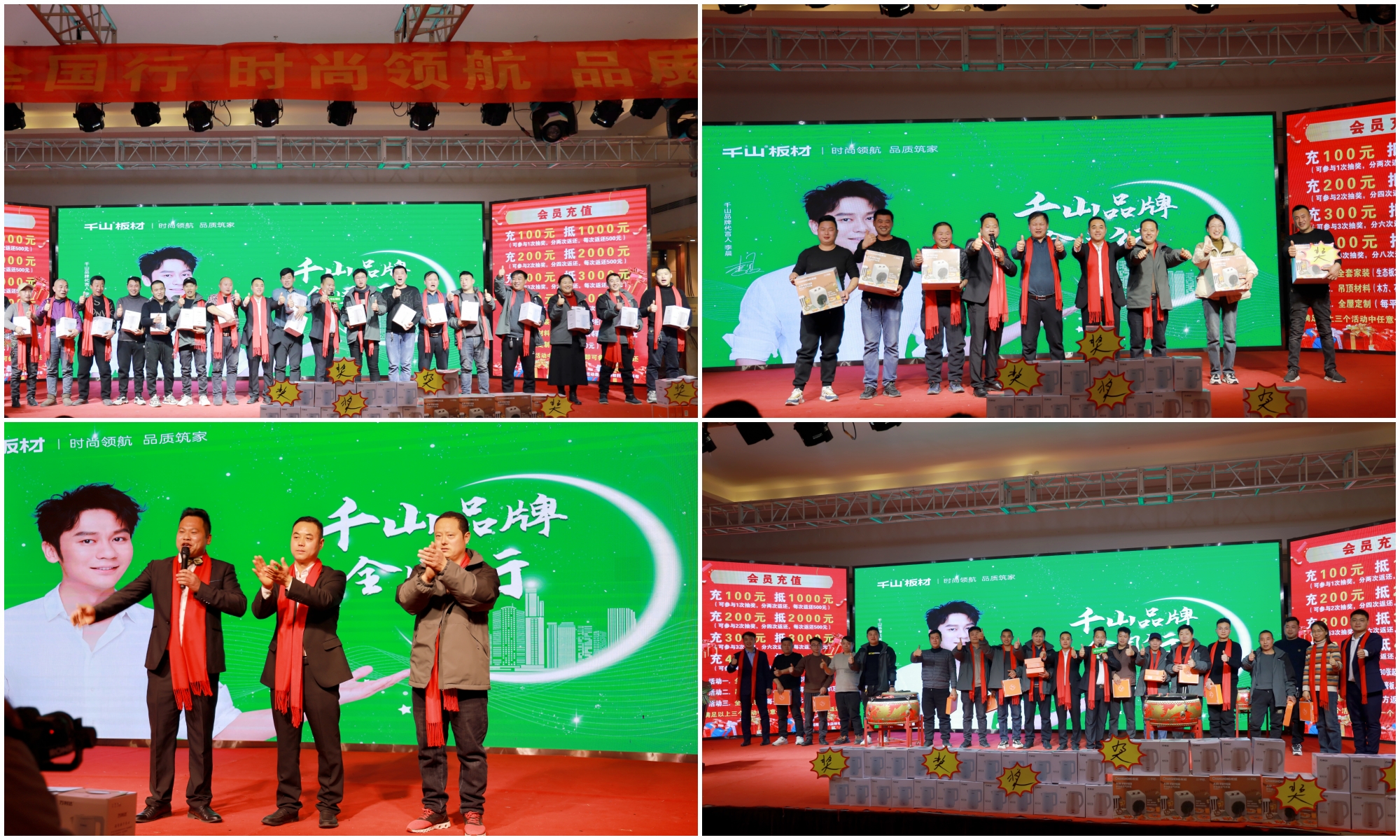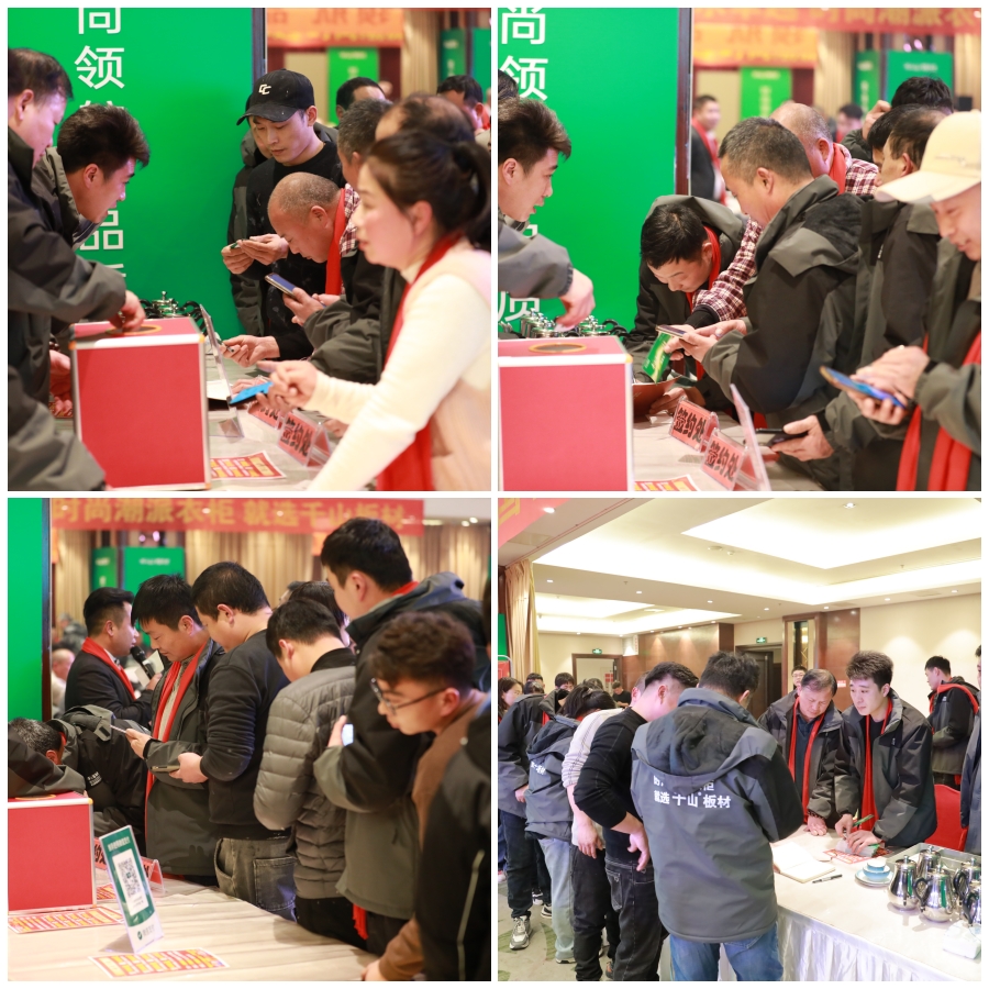 政策宣講環(huán)節(jié),金總重點(diǎn)介紹了千山板材的合作政策及空前優(yōu)惠力度。重磅優(yōu)惠包含定金膨脹、滿額返現(xiàn)、現(xiàn)場抽獎(jiǎng)等,現(xiàn)場隨即排起了交款長隊(duì),簽約火爆。