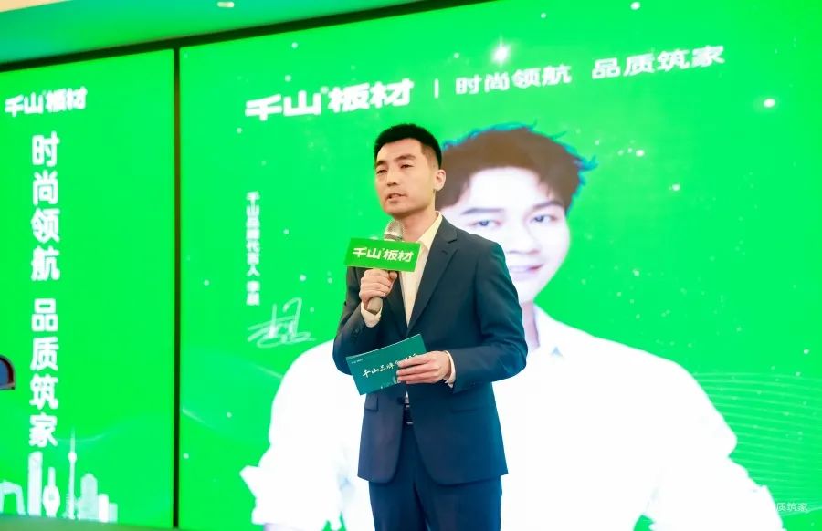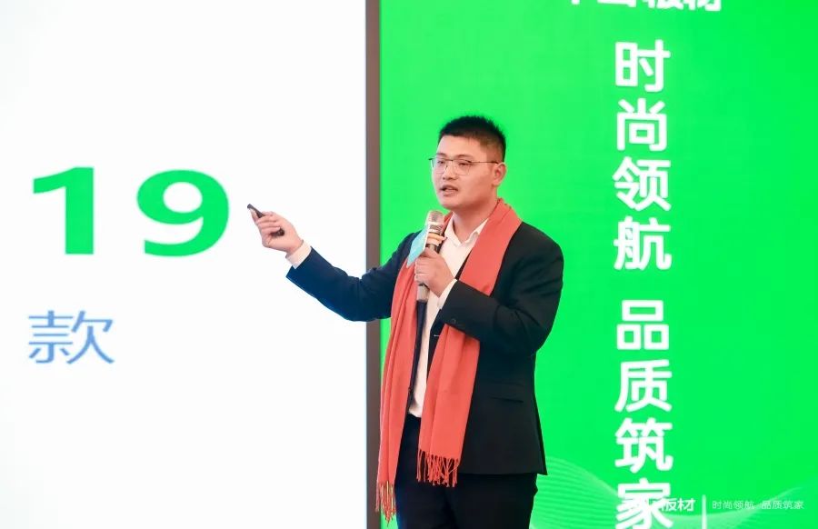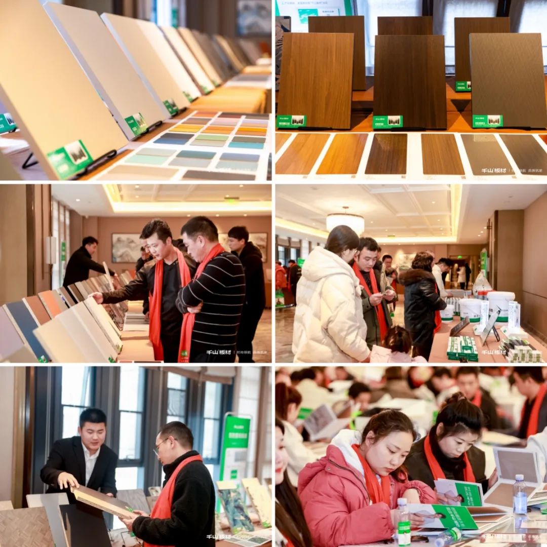 銷售部大區經理王殿忠詳細介紹了千山板材的產品體系。2024年,千山產品體系已全面升級,涵蓋大實木刨片板、小實木刨片板、多層板、實木板四大品類,擁有木紋、純色、布紋石紋、高定、數碼、門板6大系列花色,一站式滿足整家定制的需求。