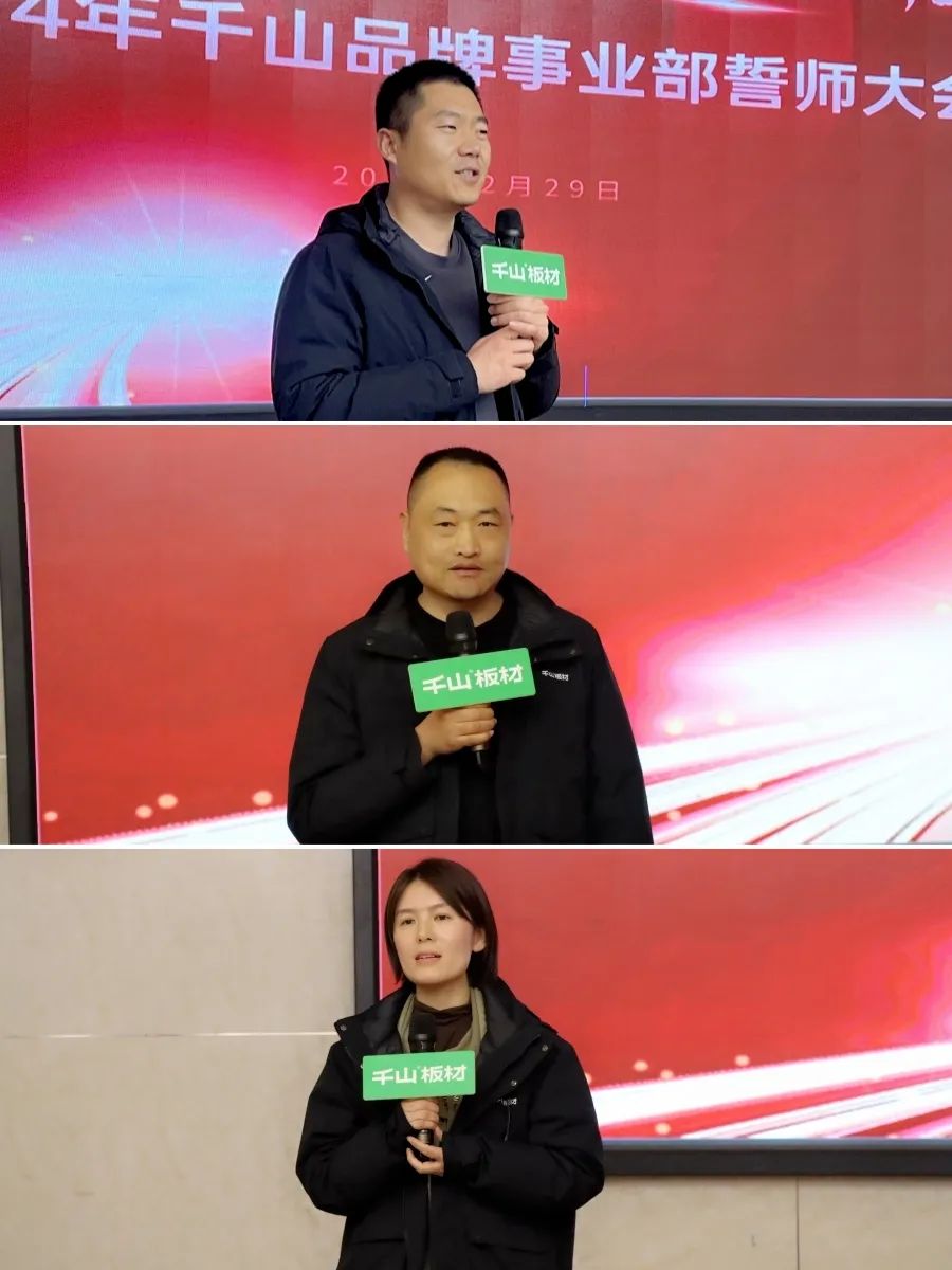 集團運營管理部總經理胡玉濤、生態板事業部總經理邱佃樓、環保膠事業部總經理王娟分別發表講話。他們指出千山的營銷團隊是一支年輕、充滿活力的隊伍,也是敢打敢拼的營銷鐵軍。