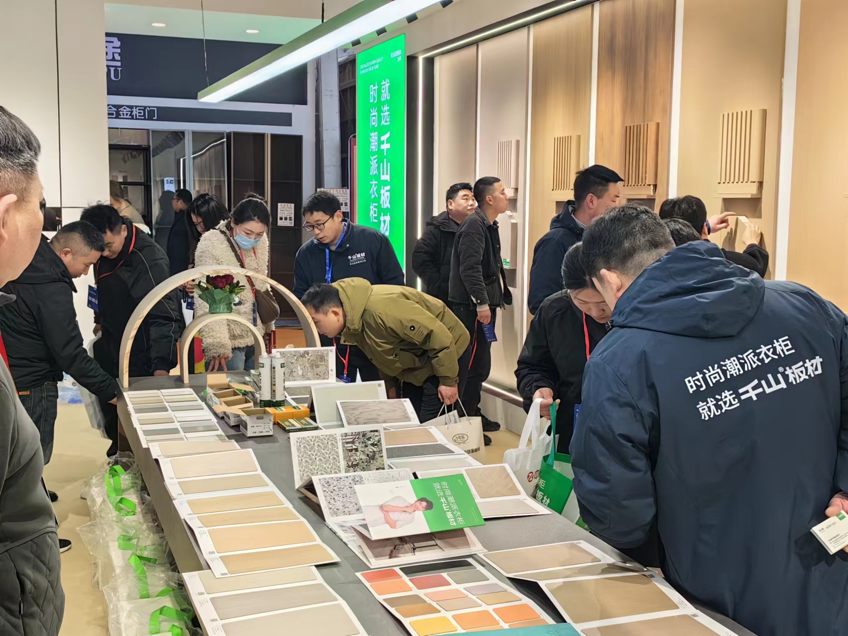雖然現(xiàn)場咨詢客戶很多,但千山的小伙伴們一直以最飽滿的熱情和活力,貼心引導(dǎo),為現(xiàn)場客戶答疑解惑,為千山板材展館增添了又一道人氣風(fēng)景線。