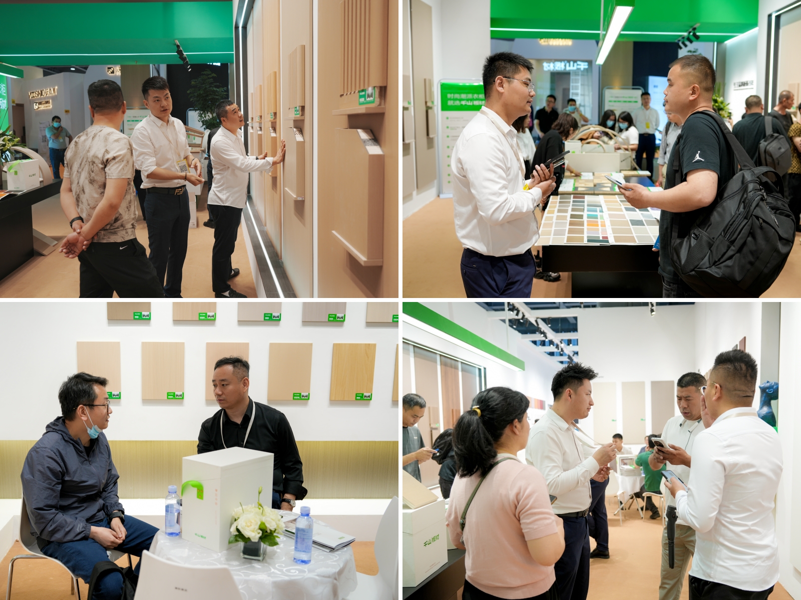 千山板材展位吸引了眾多觀展者前來參觀咨詢,多個亮點燃爆現場,開展首日便人氣“爆棚”,成為“熱門打卡點”。現場的小伙伴們專業、耐心、細致地為大家講解產品特點和產品優勢。