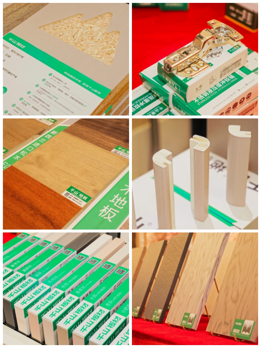 千山板材涵蓋4大品類(實木大刨片、實木小刨片、實木多層、實木香杉木 ),6大系列119款潮流花色,并打通了15款門墻柜系統(tǒng)花色,滿足了當(dāng)下絕大多數(shù)客戶的產(chǎn)品需求。