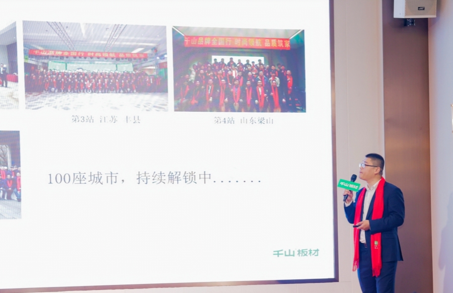 千山板材區(qū)域經(jīng)理孟曉圍繞生產(chǎn)實力、企業(yè)文化、業(yè)務(wù)模式等,生動描繪了千山26年的發(fā)展歷程,傳遞了千山“以推進(jìn)健康、時尚,潮流家居、裝飾材料為已任,引領(lǐng)行業(yè)新潮流” 的品牌使命。