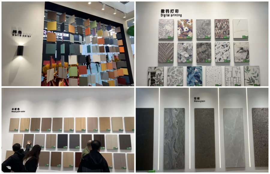 6大系列:木紋系列(41款)、純色系列(32款)、布紋石紋系列(8款)、高定系列(10款)、數碼打印系列(16款)、門板系列(12款),119款潮流花色隨心選擇。