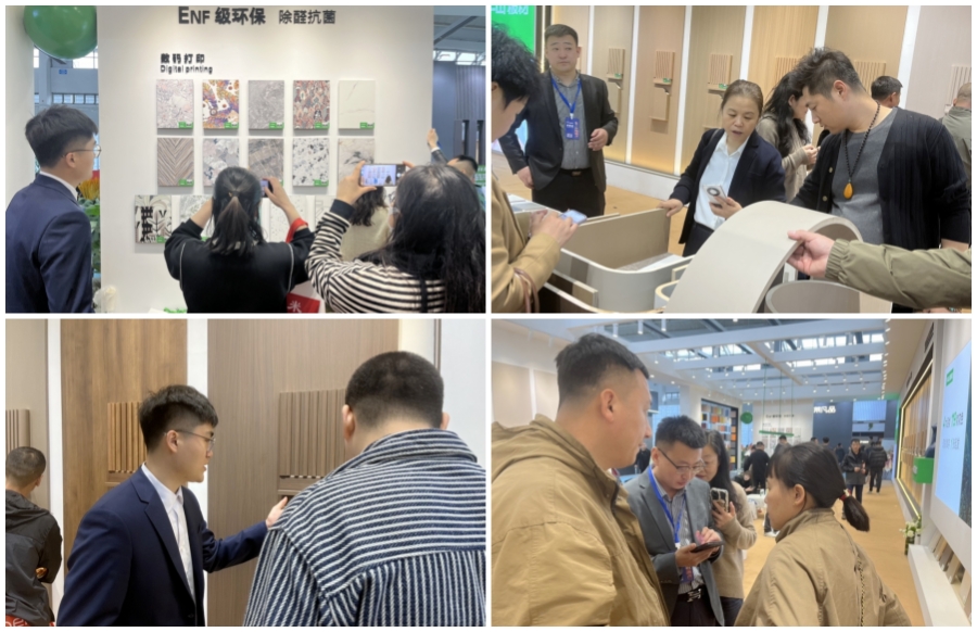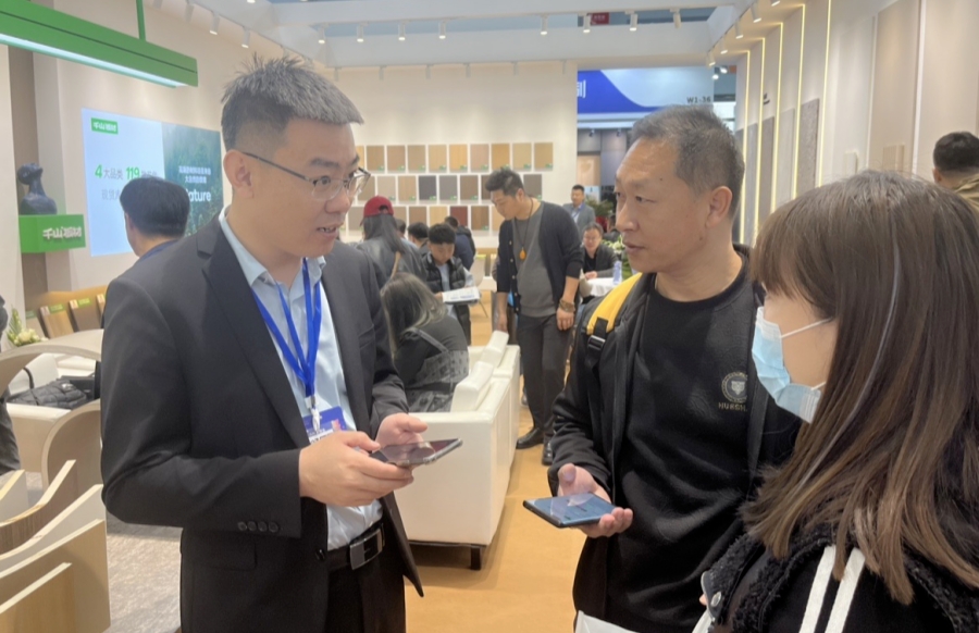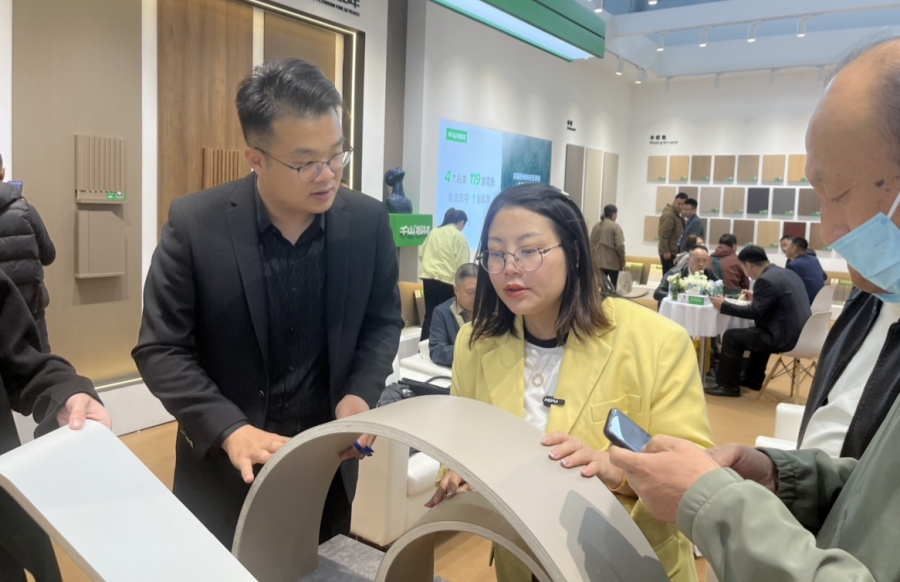 此次參展,千山板材全程幫扶式的加盟政策吸引了眾多觀展客戶前來咨詢、洽談合作,現場的小伙伴們全程耐心講解,相繼斬獲了大量意向簽約合作。