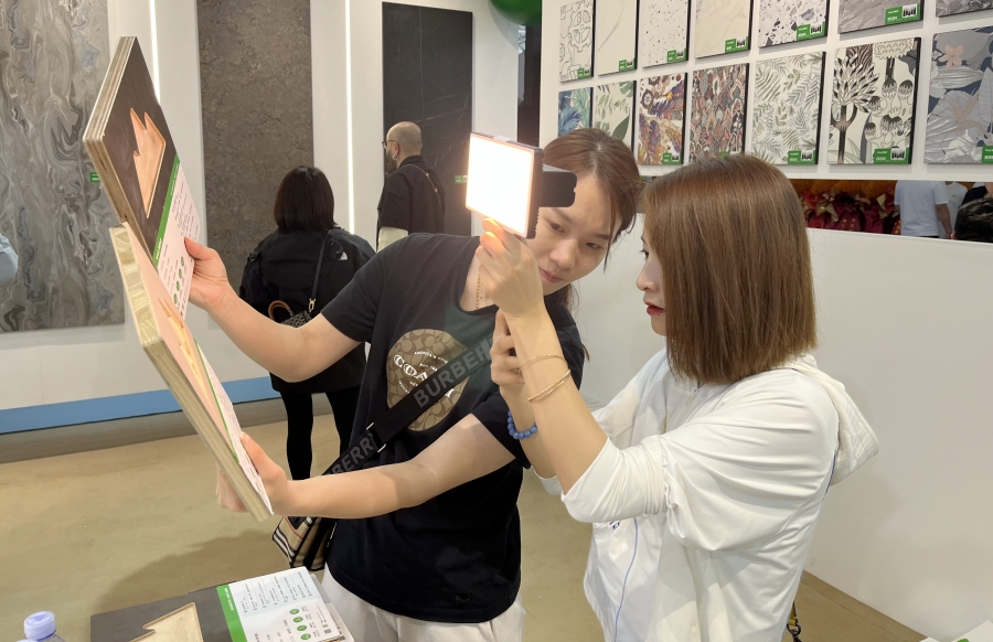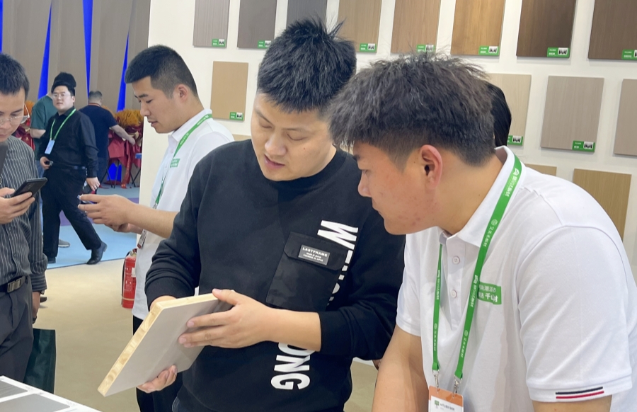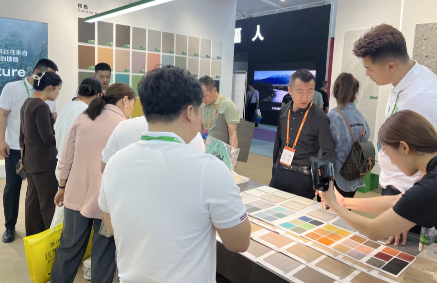 千山板材閃耀亮相1號館T-59展位,以四大品類產(chǎn)品、六大系列主題花色打造2024年爆品矩陣,呈現(xiàn)持續(xù)飆升的參觀熱度。