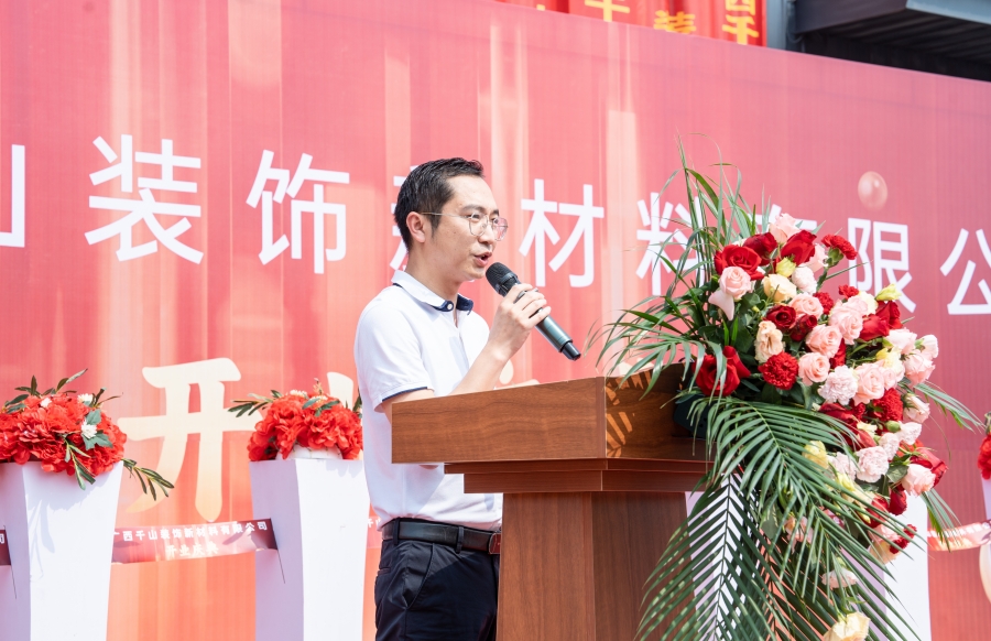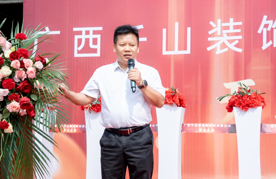 隨后,廣西千山裝飾新材料有限公司總經(jīng)理邵廣峰發(fā)表講話。邵總表示,廣西生產(chǎn)基地將秉承集團(tuán)的發(fā)展宗旨,在政府和協(xié)會的領(lǐng)導(dǎo)下,整合利用市場資源優(yōu)勢,加強(qiáng)管理、提升技術(shù),以高昂的熱情積極投身于各項生產(chǎn)經(jīng)營活動,助力集團(tuán)的高質(zhì)量發(fā)展,同時為推動行業(yè)的發(fā)展作出應(yīng)有的貢獻(xiàn)。