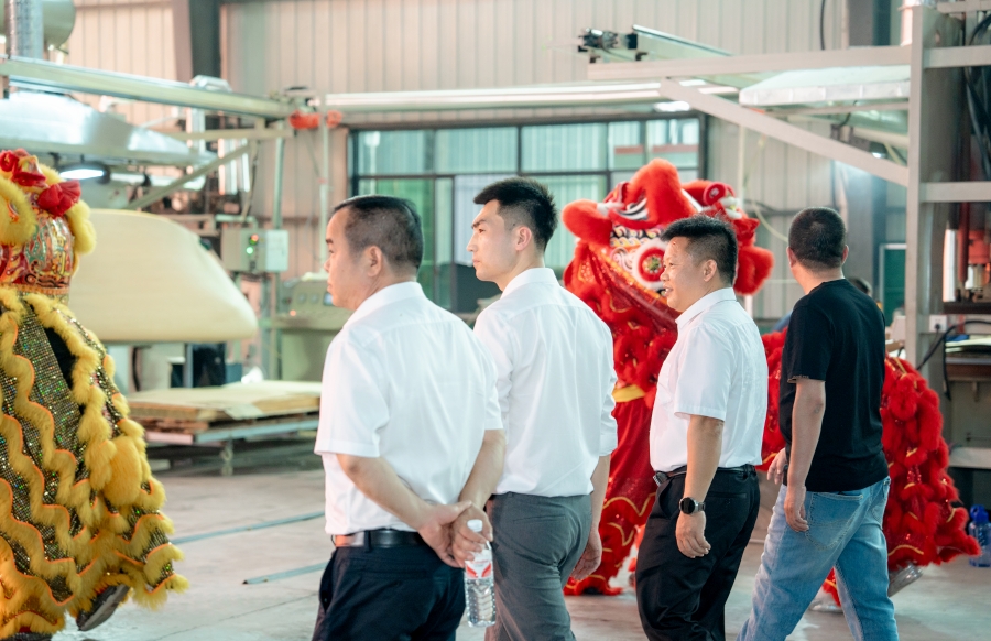 隨后,所有領(lǐng)導(dǎo)及嘉賓跟隨雙獅的腳步,共同移步到生產(chǎn)車間參觀,深入了解生產(chǎn)流程、質(zhì)量控制、設(shè)備配置等方面的具體情況。