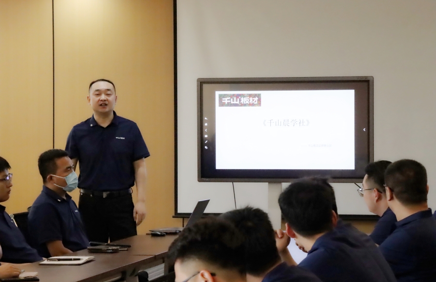 為培養學習型團隊,提升營銷人員的認知、思考、學習能力,搭建品牌事業部人才梯隊,千山商學院內訓管理小組特決定組織“千山晨學社”。晨學社為持續性的學習平臺,每月末至次月初,全體營銷人員參加晨學,提升專業能力、凝聚團隊向心力。