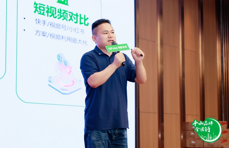 千山板材品宣經理張新江分享了《短視頻同城獲客系統》,為合作伙伴們提供了有效的線上拓客策略。通過以抖音為代表的短視頻平臺,終端門店可以更好地展示產品特點,吸引線上潛在客戶,提高品牌曝光度,助力我們贏戰市場。
