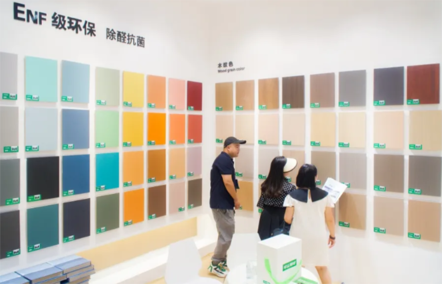 千山板材4大品類全線升級(jí)新一代ENF級(jí)“凈醛板”,采用ENF級(jí)無醛添加基材,涵蓋刨片板、多層板、實(shí)木板,凈醛、抗菌、抗病毒三效合一,成為本次展會(huì)的一大亮點(diǎn),關(guān)注度也持續(xù)飆升。