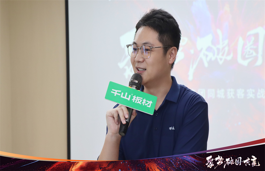 千山板材銷售部總監董向陽在開營致辭中分享到,市場是一個大水庫,而我們的經銷商伙伴就是水渠,我們破局的思路要抓住兩個關鍵詞:深度和寬度!寬度就是擴大入口引流,深度就是做好產品、策略、服務,打好營銷組合拳。