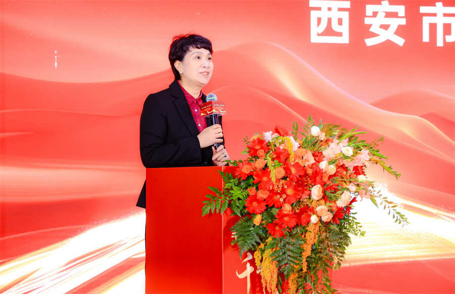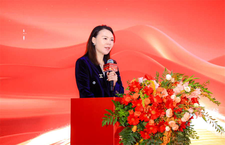 西安市酒店用品行業(yè)協(xié)會會長王勤女士上臺致辭。王會長表達了對千山板材陜西倉落地西安的祝賀,期望千山板材陜西倉能繼續(xù)以高品質(zhì)的產(chǎn)品服務回饋消費者,賦能推動西北家具行業(yè)的發(fā)展。