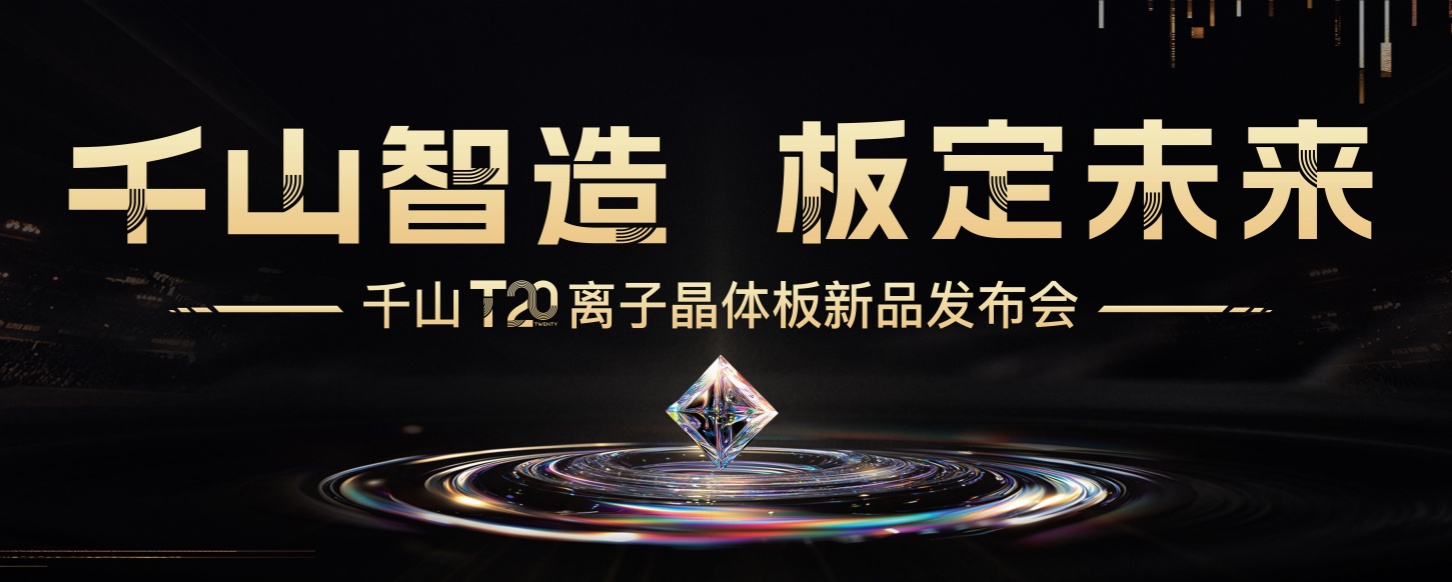 領導嘉賓們共同登臺,進行T20離子晶體板首發的啟動儀式。千山T20離子晶體板的正式上市,不僅標志著千山板材正式邁入“離子晶體板”時代,更預示著千山向著更高智造標準跨越式進階。