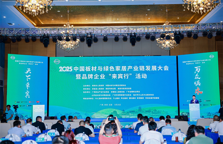 51517日,“天下來賓·萬眾矚2025中國板材與綠色家居產業鏈發展大會暨品牌企業 “來賓行”活動廣西省來賓市武宣縣隆重舉行。本次大會由來賓市政府和中國木材與木制品流通協會共同主辦,大會同步舉行第四屆人造板流通品牌研討會。