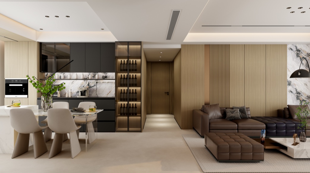 127款高顏花色涵蓋木紋系列、純色系列、布紋石紋系列、高定系列、數碼系列、門板系列,搭配膚感PET,隨心上色,輕松玩轉潮流風格。打通23款門墻柜一體花色,涵蓋板材、室內門、實木格柵、圓弧、埡口、門套、踢腳線,實現全屋同色一體。