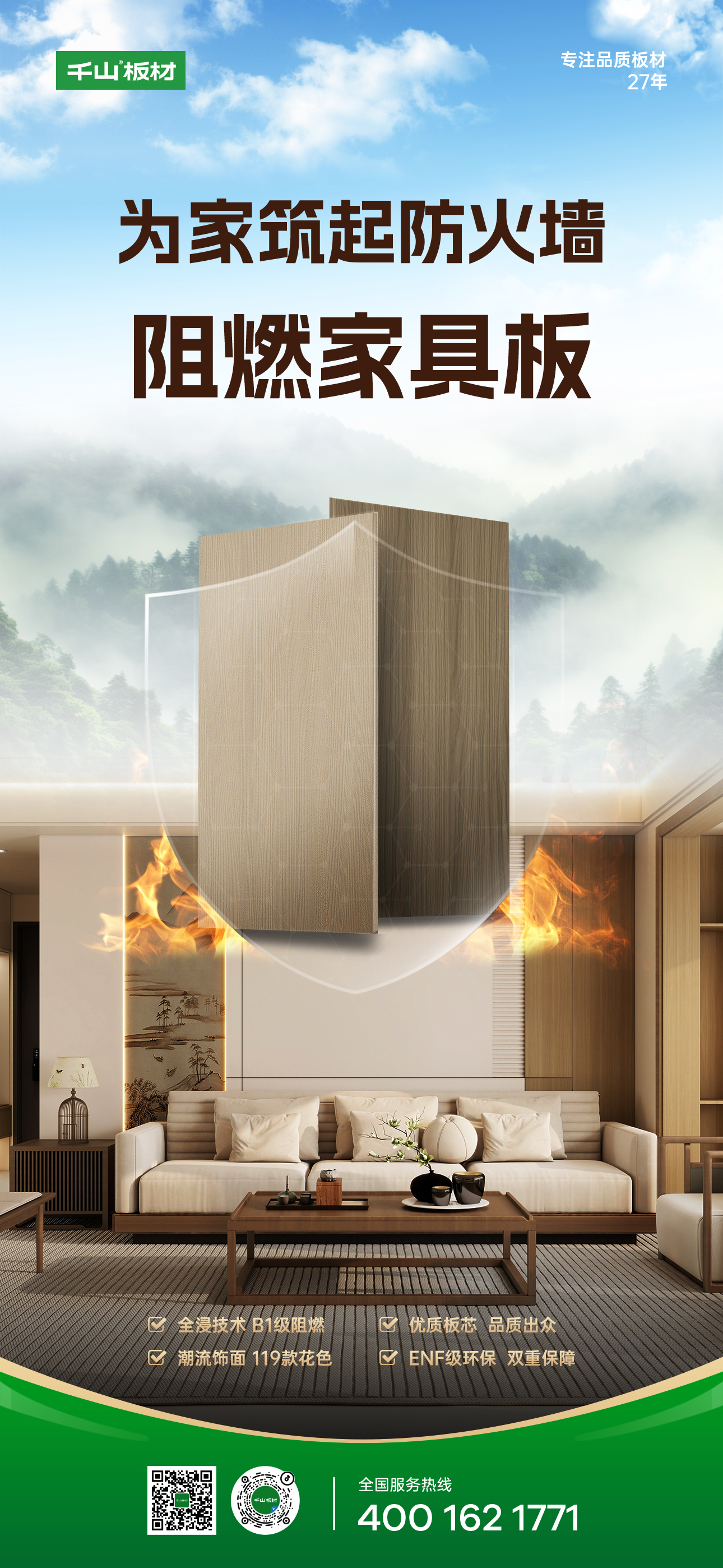 質敬315 護航365丨千山板材阻燃家具板重磅上市,防火阻燃,安全守護!