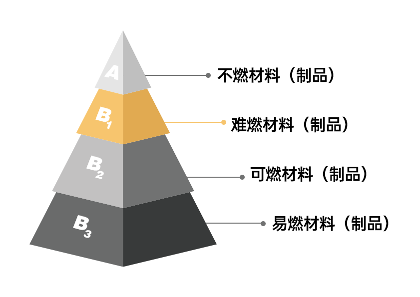 根據GB8624-2012《建筑材料及制品燃燒性能分級》,建筑材料及制品燃燒性能分為A、B1、B2和B3四個等級。