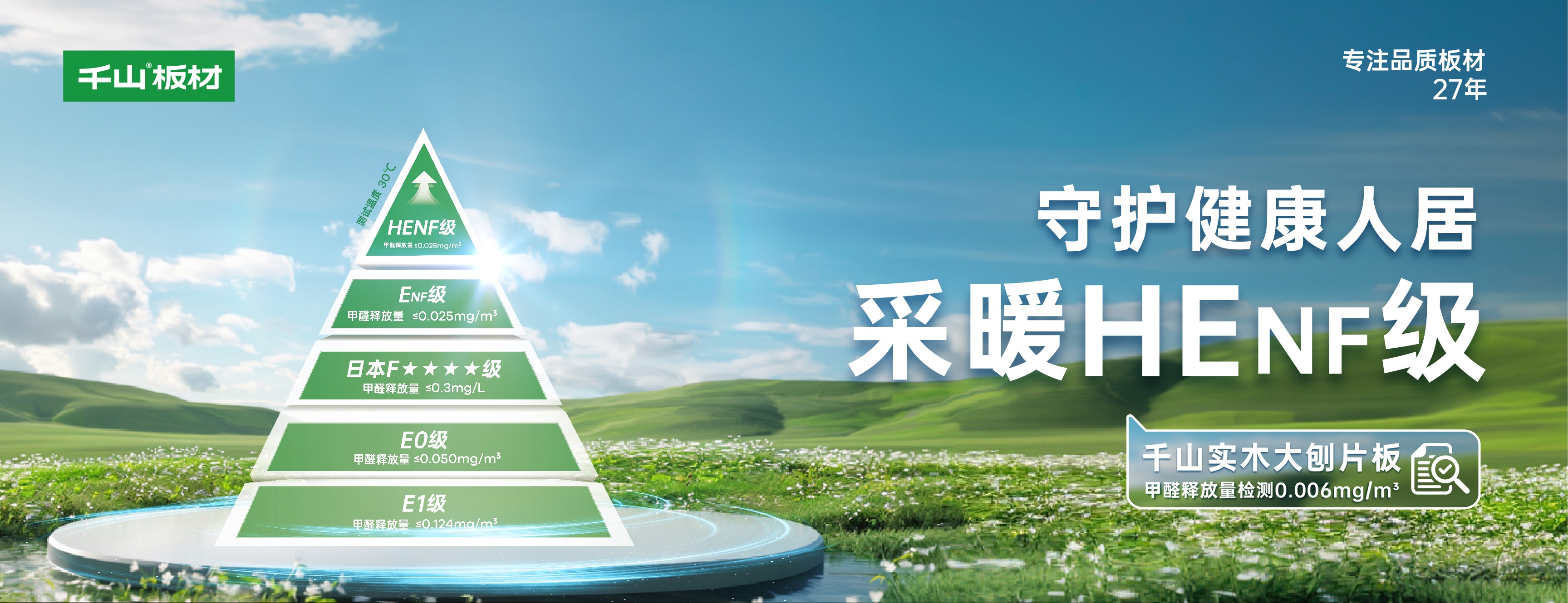 千山HENF級凈醛板,以凈醛、抗菌、抗病毒的三重防護,重新定義了健康家居的高標準,為消費者提供了更安全、更環保的居住環境。