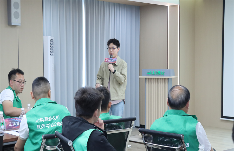 千山板材河南運營中心總經理程效章致辭。程總表示,短視頻和直播已成為搶占市場的核心賽道,抖音也將是經銷商伙伴們開拓新市場的“超級武器”,希望伙伴們通過此次賦能特訓掌握短視頻的營銷密鑰,在家居藍海中共贏未來!