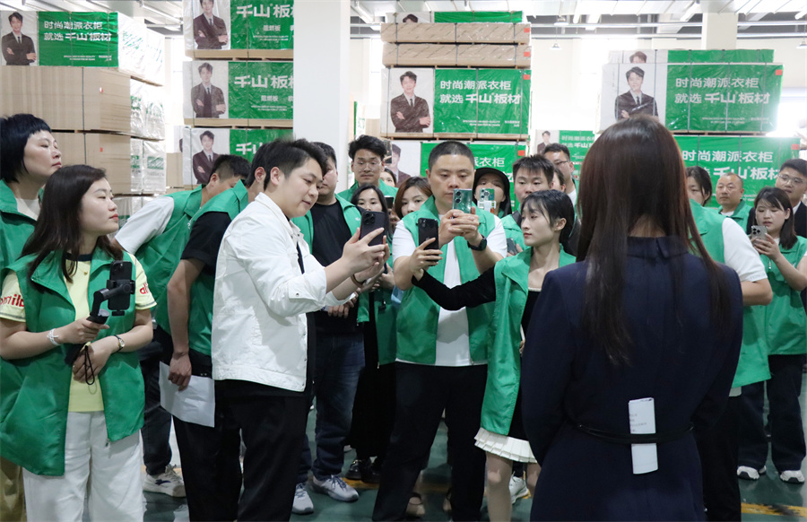 千山板材河南開封運營中心負責人柳娜致辭。柳總強調,抖音正成為連接品質家居與用戶需求的關鍵橋梁。千山板材以“環保+品質”為核心,恰恰是短視頻內容創作的優質素材,從板材的基材工藝到成品家具的顏值落地,從工廠的智能制造到終端客戶的滿意反饋,每一個環節都自帶“流量基因”。