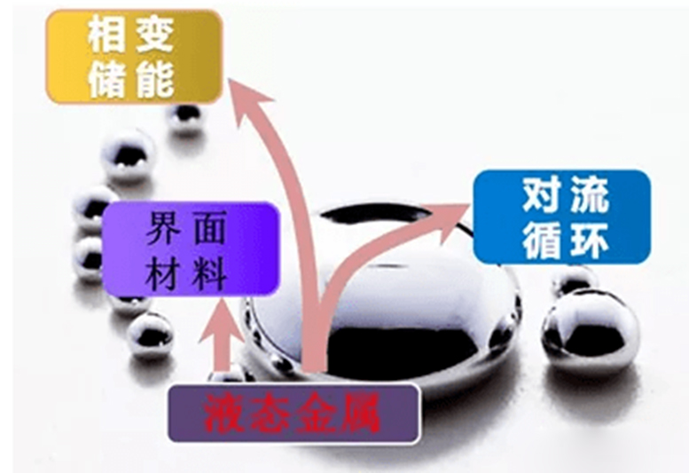 液態金屬也稱塊狀非晶,原子呈無序排列,無晶界,微觀結構均勻,無析出相。而傳統金屬原子呈有序排列,有晶界,有析出相,微觀結構不均勻。材料的性能 大多由內部結構決定。它在常溫常壓下呈液態,由于其不定性的液體形態使得液態金屬具有極佳的電性能、熱力學性能和導熱性能。根據成分配比,液態金屬材料會具備不同的功能屬性,如吞噬效應和自驅動等特殊功能,在電子制造、散熱、空間、生醫等領域有著重要應用前景,是近年來學術界和產業界關注的熱點。其中,液態金屬在熱管理領域的應用主要體現在熱界面材料、對流循環和相變儲能。