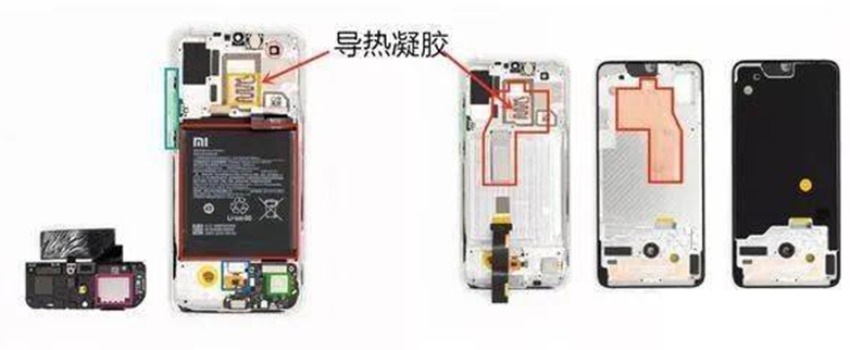 大家應該注意到了其中導熱凝膠高散熱材料,這款散熱材料有點類似于本身電腦CPU上的硅脂,它和硅脂的功能一樣,為了有效將CPU中的熱量有效導出給熱管進行散熱,所以這也是熱界面材料從電腦端轉向移動端使用的案例。