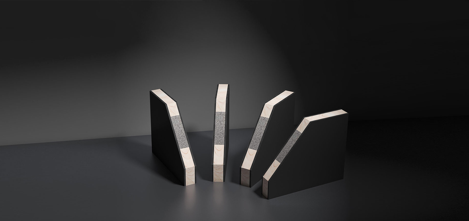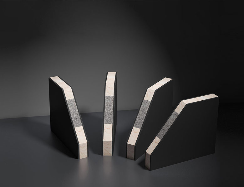 一種新型原木力學板,通過木材二次加工,使木材重量減輕百分之四十。 減小木材應力,使木材更穩定,木材彈性系數增加數倍。 多孔吸音結構,比全實板材隔音效果更好,具有多孔吸音性能。