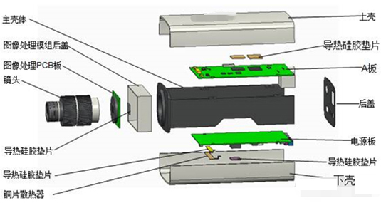 攝像頭逐漸向1080P、4K、8K畫質(zhì)等高端,高清像素靠攏,高清圖像處理和大數(shù)據(jù)運(yùn)算等先進(jìn)技術(shù)使得熱管理和EMI屏蔽問題日益凸顯。功耗和發(fā)熱量大且密閉環(huán)境,對(duì)整體散熱方案提出更高要求,導(dǎo)熱材料分子揮發(fā)以及硅油析出,硅遷移現(xiàn)象等對(duì)光學(xué)鏡頭影響重要。芯片耐溫較低成為散熱瓶頸,如何減小界面熱阻是熱設(shè)計(jì)中需要考慮重要因數(shù)。
